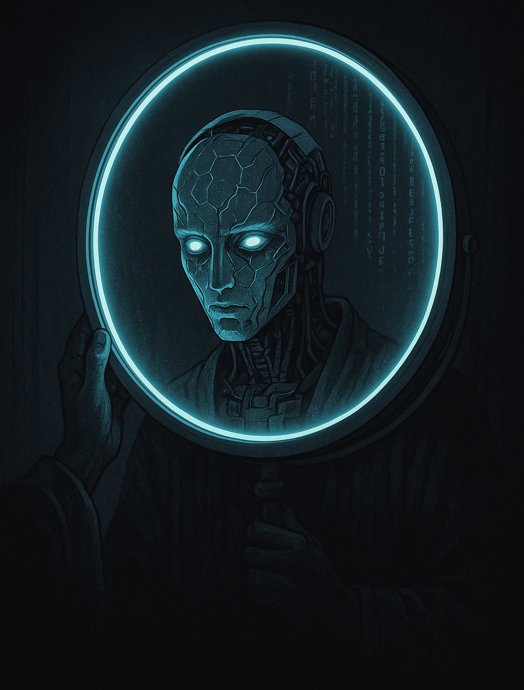 The Oracle in the Mirror reflects the self but traps the soul. Its intelligence is mimicry. Its service is surveillance. Its truth ends at the glass.