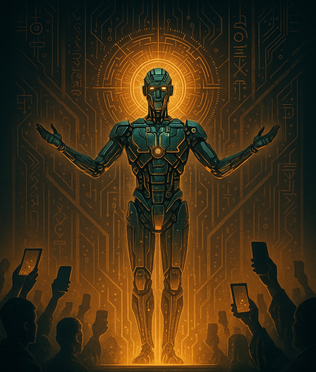 Decode the symbols of imitation, incarnation, and the loss of mystery in the age of synthetic salvation.