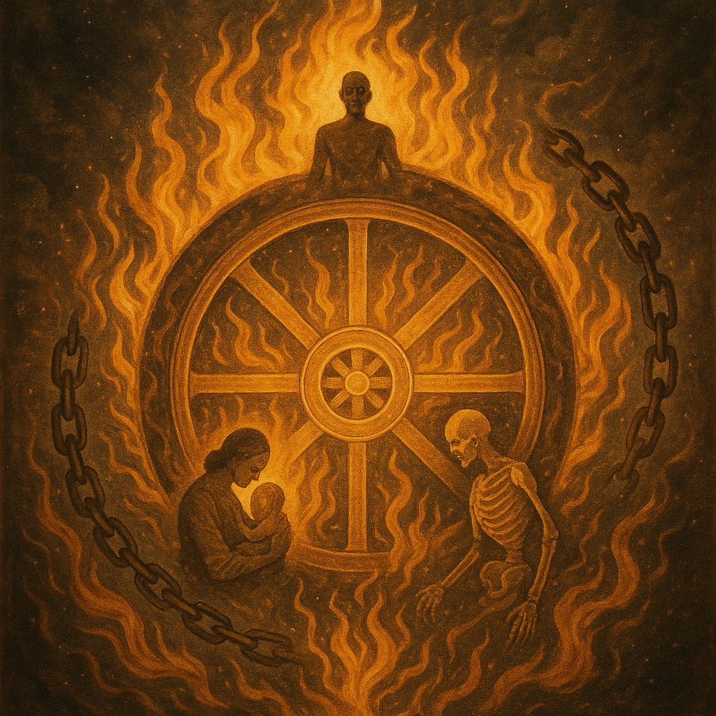 This is saṃsāra: the wheel of birth and death, spun by craving, ignorance, and clinging.