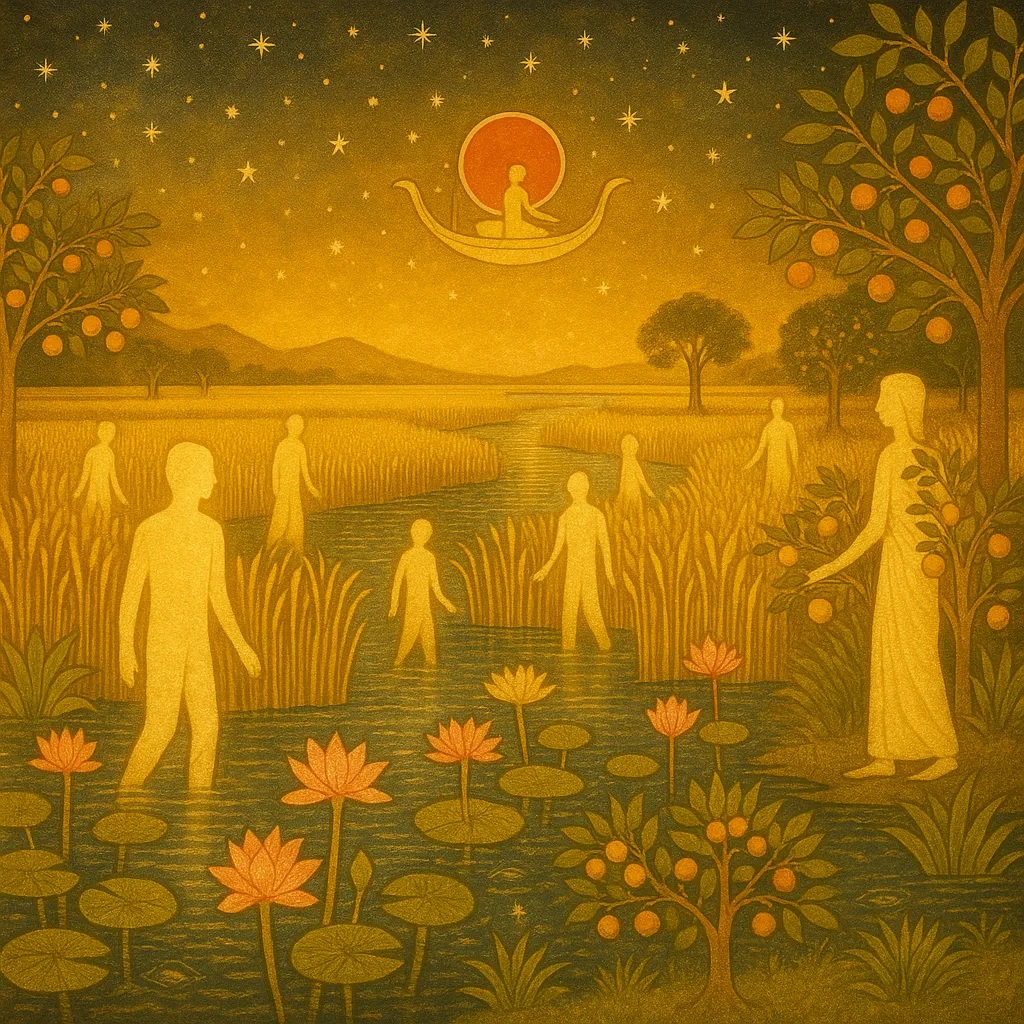 Some souls remained in the Field of Reeds. Others chose to return, re-entering the cycle of life, reborn into time, veiled once more in forgetfulness, yet carrying echoes of past lives.