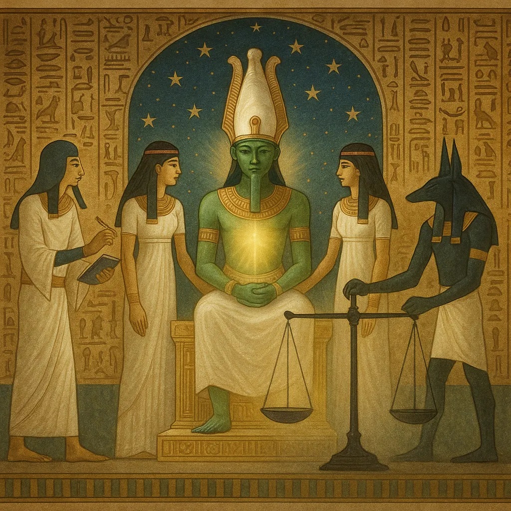 Osiris was not alone. With him stood Ma’at, Anubis, Thoth. Together they formed the sacred tribunal. And it was his throne, the throne of Osiris, that every soul would approach to be weighed, measured, and possibly glorified.