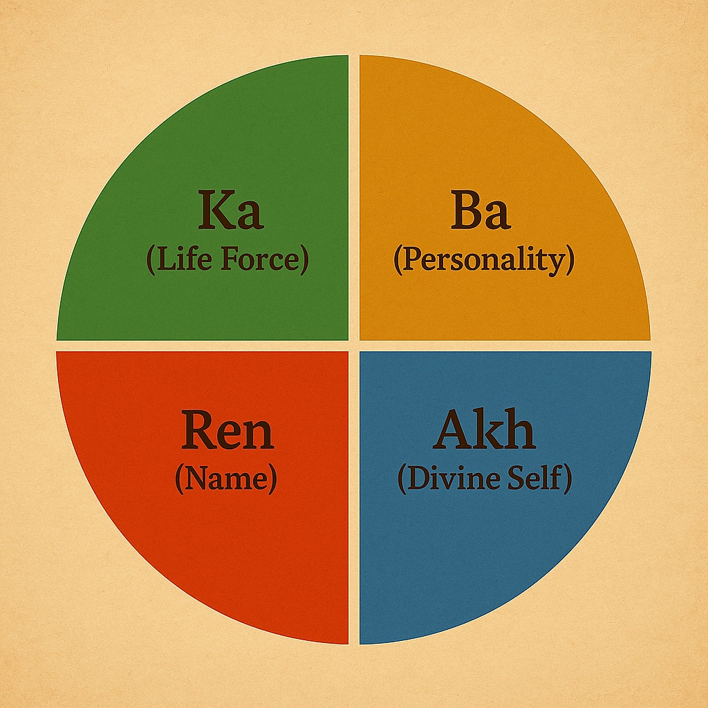 - The Egyptian soul had multiple parts: Ka (life-force), Ba (spirit-self), and Akh (immortal light-being).