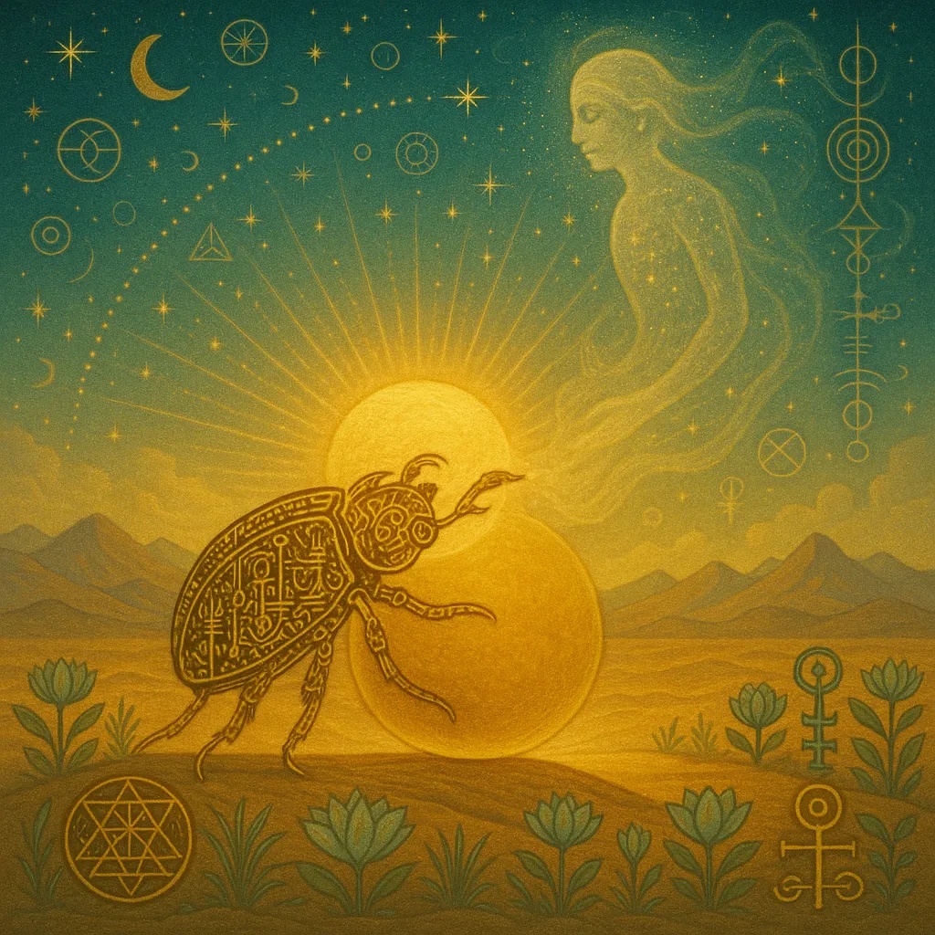Rebirth, called kheperu, was an act of divine will. The scarab beetle, symbol of Ra’s self-creation, rolled the sun across the sky each day, and rolled the soul through cycles of becoming. Life, death, return. Memory, forgetting, awakening.