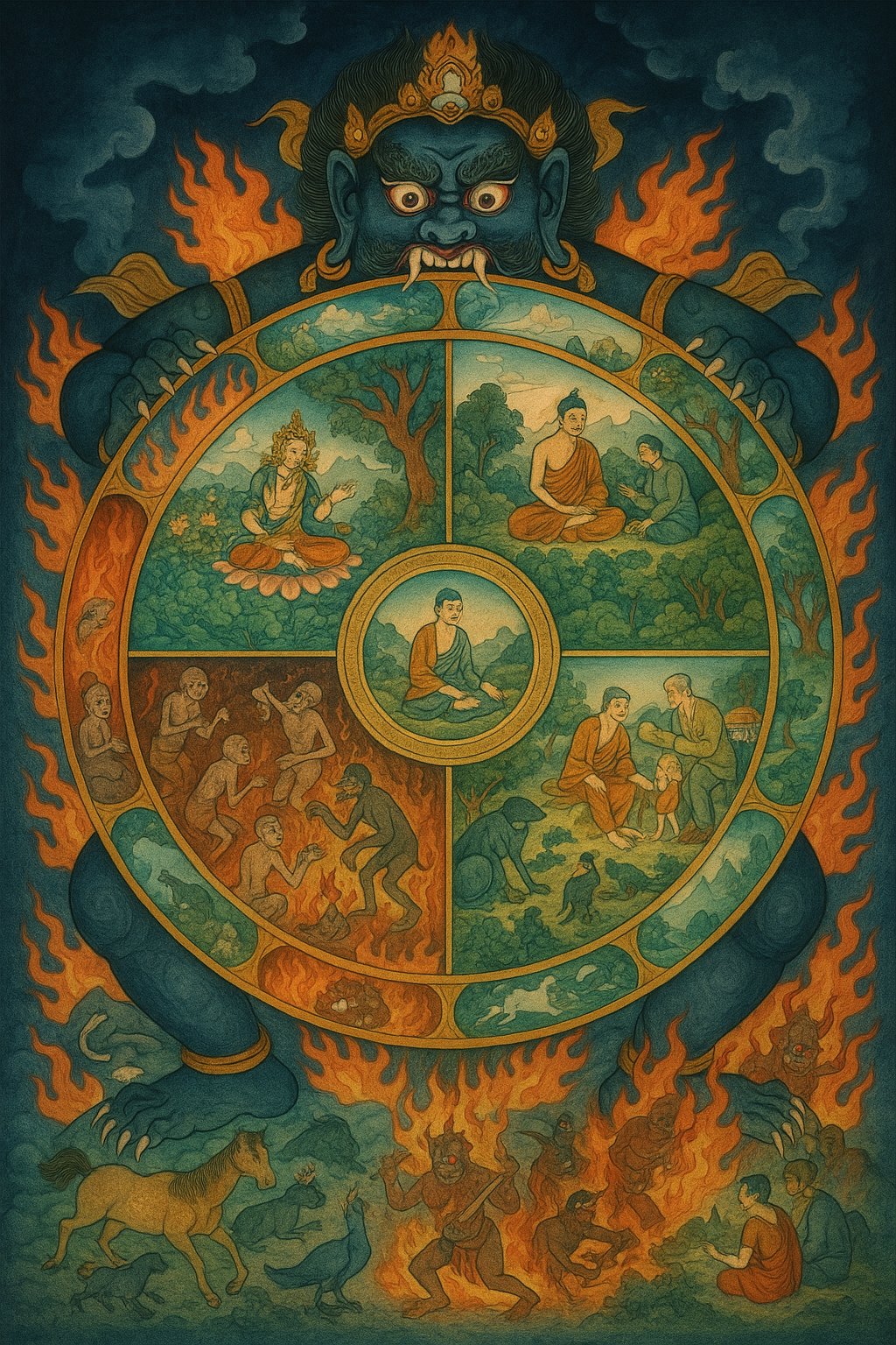 These are not just post-mortem destinations, they are states of consciousness that rise and fall within a single day, or a single life. One moment in divine ease, the next in ghost-like hunger. This is the inner wheel.